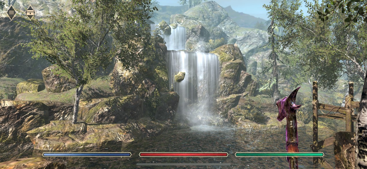 即使作为手游,其画质精美程度也丝毫不亚于主机游戏,画面全面采用自然环境拟态光效,各种模型场景都与《上古卷轴V:天际》中的视觉表现如出一辙,再加上无需耳机便可体验的3D立体环境音,给游戏营造了极高的沉浸感。