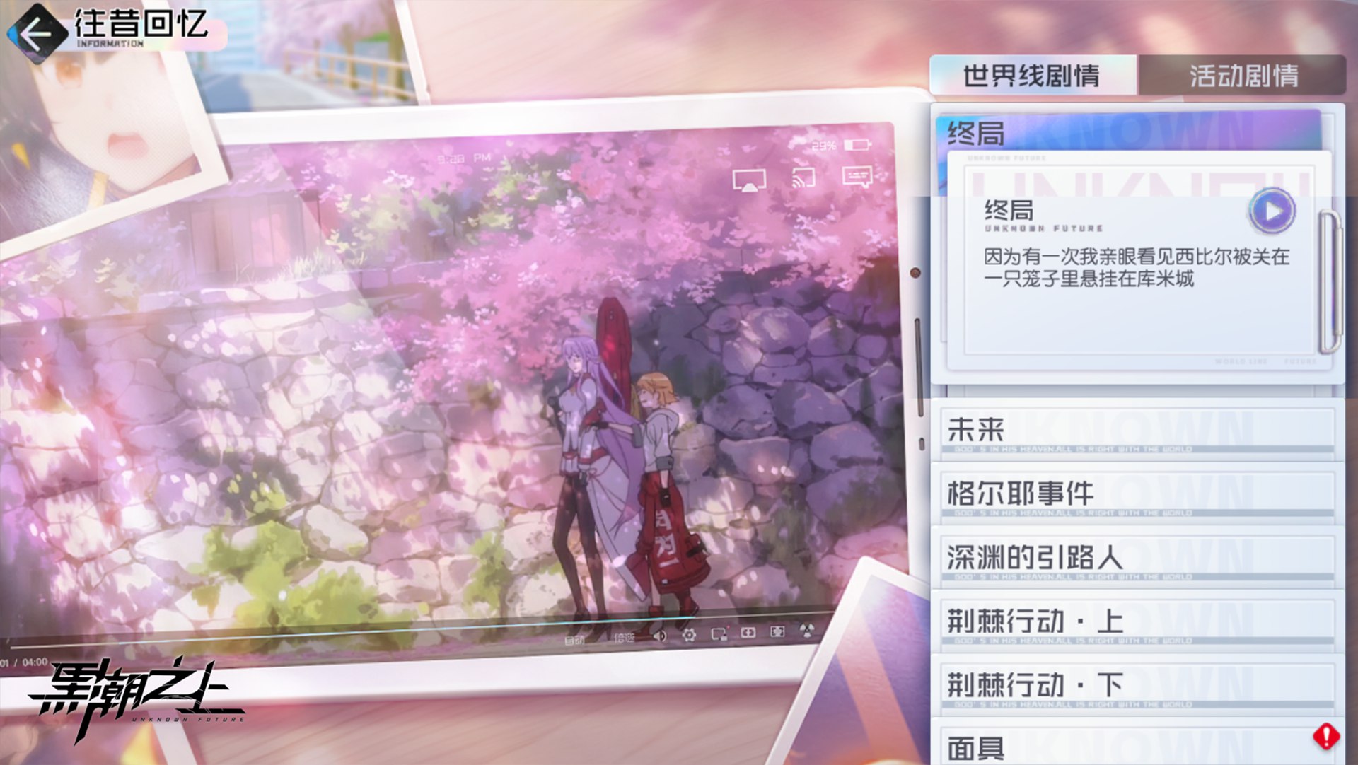终局,也是全新的故事起点!数十位战斗少女集结,携手各位接触者踏上逆转世界的旅程。大家期待已久的「往昔回忆」剧情回顾系统现已正式上线!前往「书房」打开「往昔回忆」,回顾与异能少女们共处的片段,每篇首次阅读均可获得水滴*20的物资奖励!