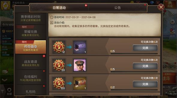 3、[传奇徽章]*120,兑换[传说技能书箱]*1(兑换限制次数:2次)