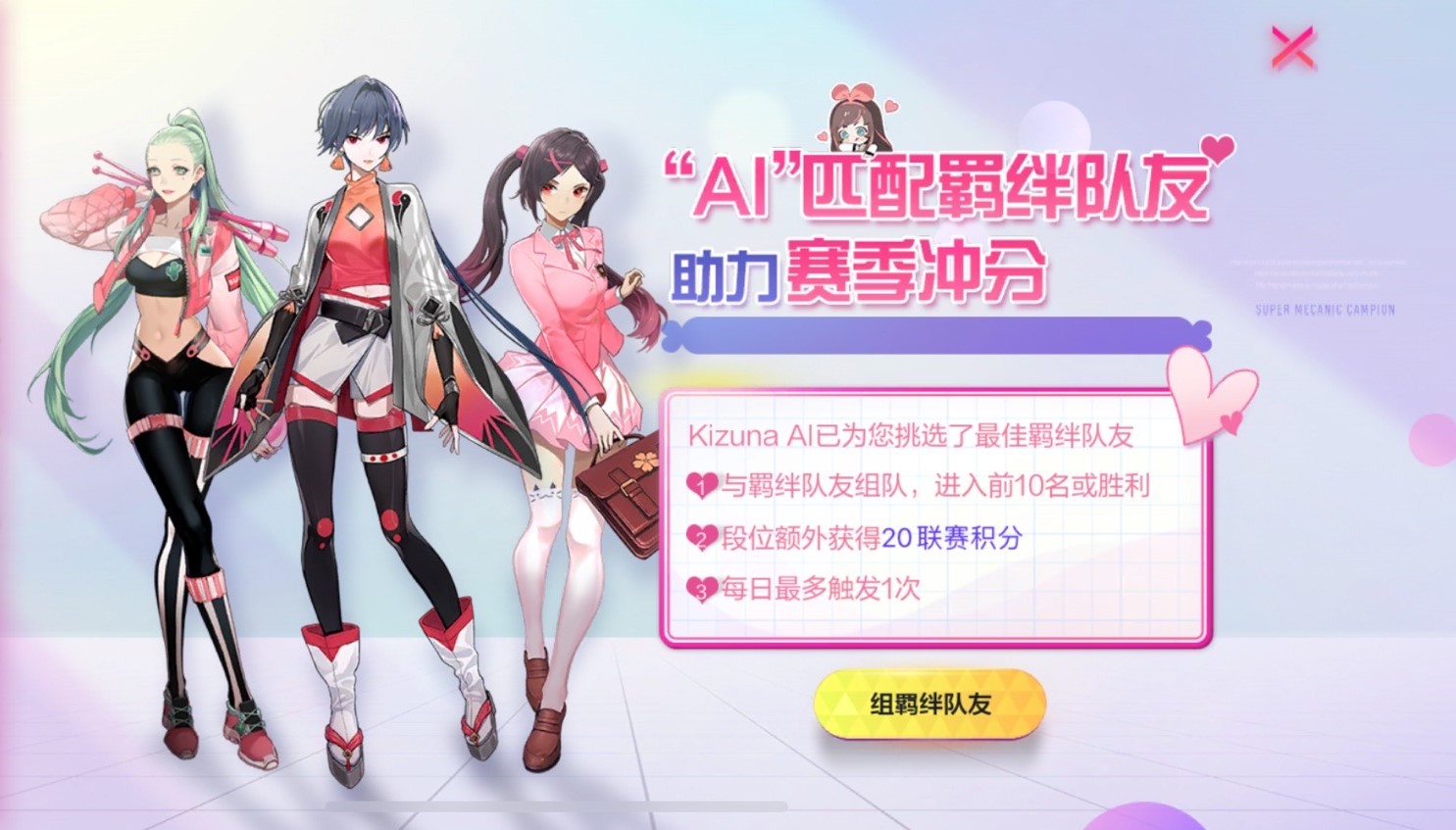 除此之外,全新组队招募系统也于今日同步上线,“‘AI’匹配羁绊队友”活动正式开启!即日起,选手们在招募队友界面中,与系统推荐的选手组队,每日可获得段位的联赛积分加成。