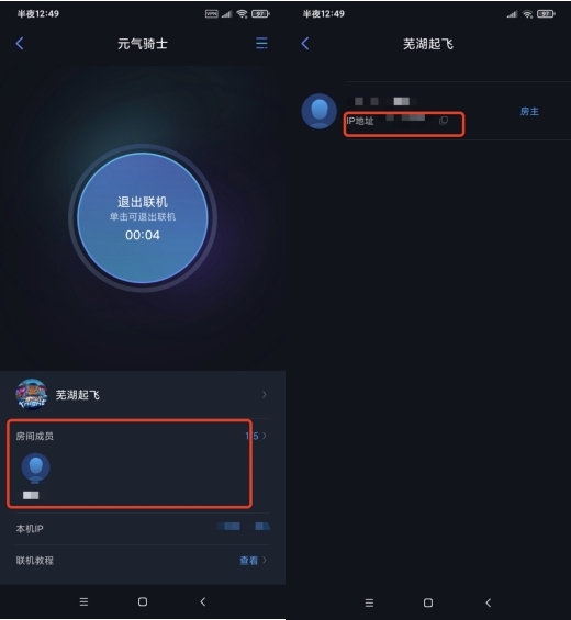 在房间内查看成员可以将房主的ip分享给其他小伙伴,他们就能通过ip进入到房间内。