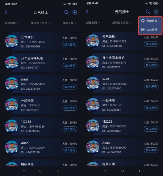 我们可以通过右上方的加号选择创建房间或加入房间,我们先创建一个房间试试。