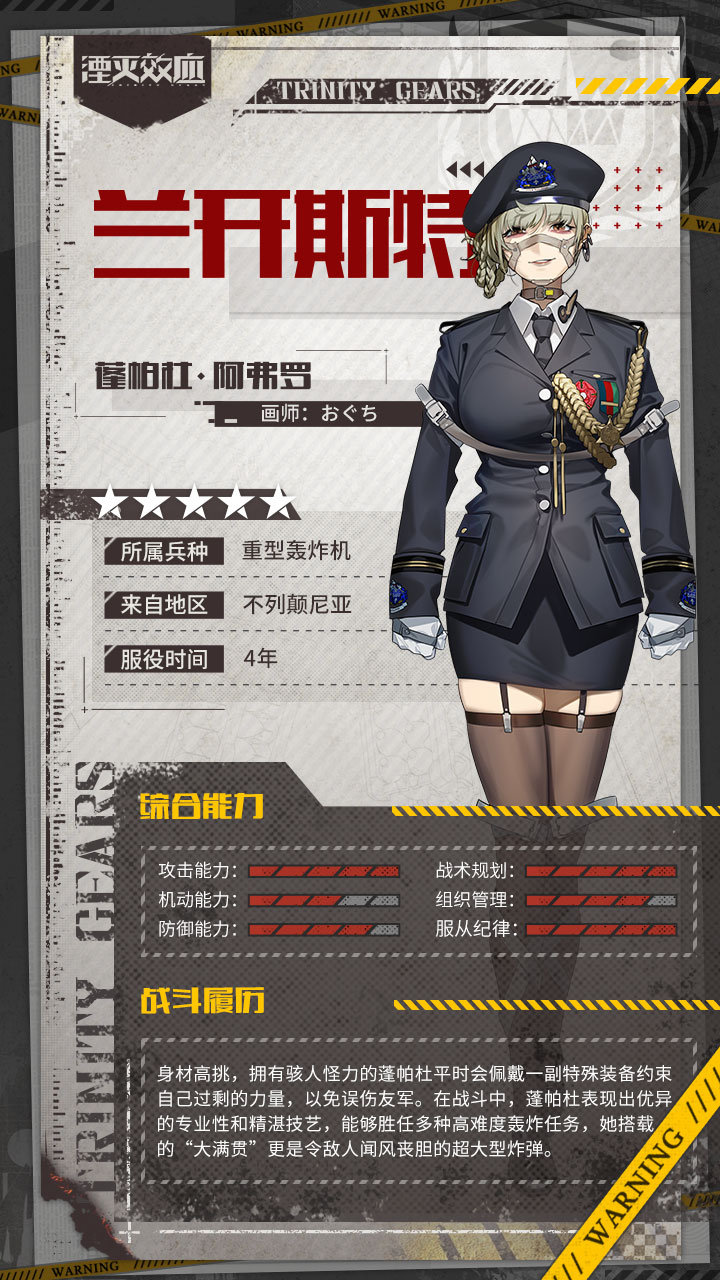 与此同时,全新空军角色、代号“兰开斯特”的蓬帕杜已经蓄势待发。这位隶属于不列颠尼亚的重型轰炸机少女,身材高挑,不仅拥有骇人怪力,而且在战斗中以专业性和精湛技艺而为人称道,能够胜任多种高难度轰炸任务,尤其是她驾驭的“大满贯”更是令敌人闻风丧胆的超大型炸弹。