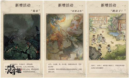 与此同时,令诸位掌柜期待已久的传统风俗活动,本次也华丽登场。亦真亦假、珍宝无数的“鬼市”、民间广为传道的“封神灵兽”、欢闹成群,孩童嬉戏打闹的“踢毽子”,以及回忆感满满的“跳房子”。《叫我大掌柜》基于古代市井活动为玩法原型,将属于它的市井、雅集、山水、茶事恰到好处的融入其中,那些充满“小心意”的原生态风俗活动,与游戏玩法恰到好处的融合,在诸位掌柜享受游戏带来的休闲和乐趣之余,更能从中了解到中华传统文化的深厚风韵。