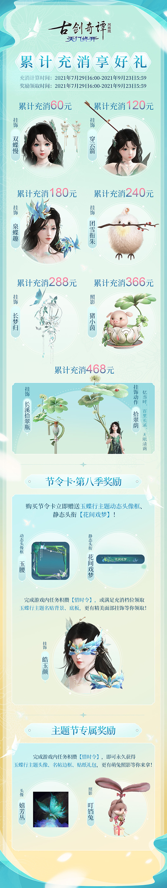 全新一轮充消奖励回馈也将于7月29日同步上线,超级丰富的充消奖励内容,梦幻与可爱并存,来看看你最喜欢哪一款呢?本次节令卡和主题节的内容也都惊喜满满哦~快来一起看看吧!