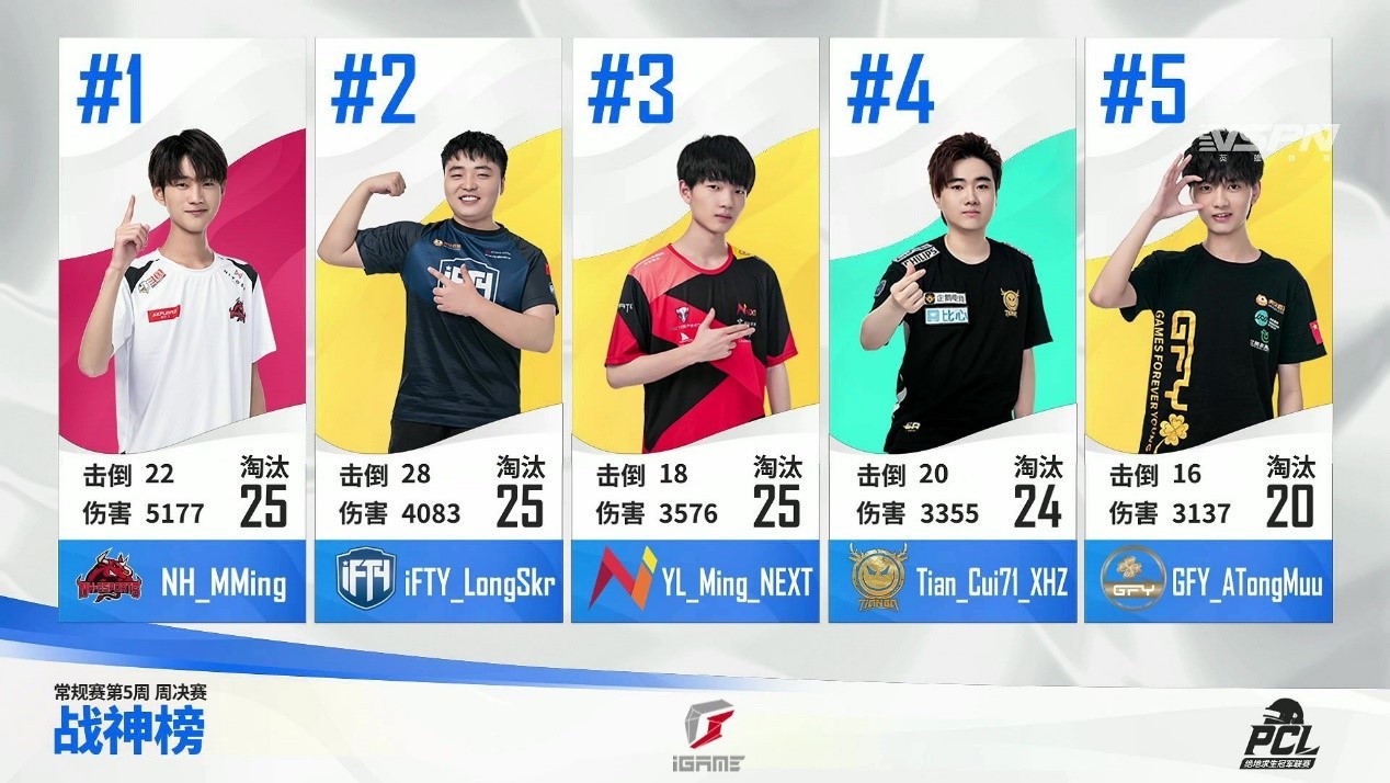 本周选手榜:NH_MMing荣获MVP,iFTY_LongSkr重回战神榜