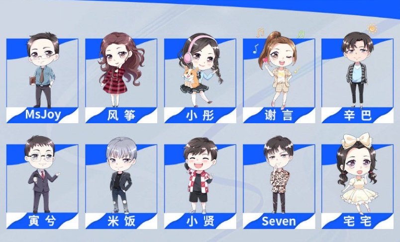 Msjoy、小彤、寅兮、谢言、风筝、辛巴、米饭、小贤、宅宅、seven