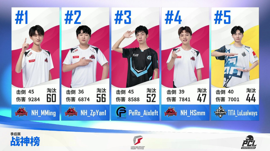 季后赛选手榜:NH战队三人上榜,MMing获封MVP