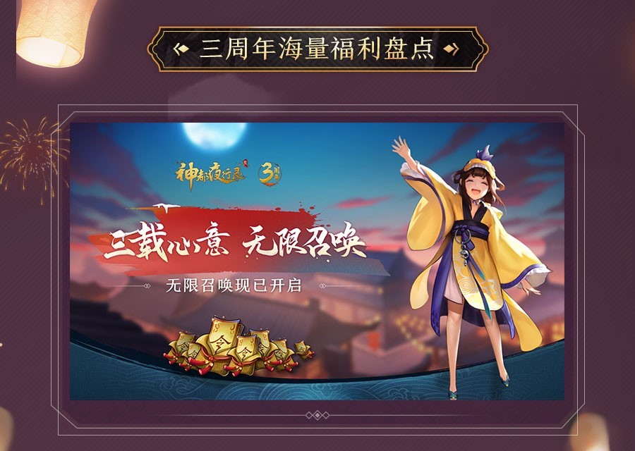 三界同欢,四海相逢,《神都夜行录》在各位降妖师大人的陪伴与支持之下迎来了第三个生日。为筹办一场美味丰盈的回馈盛宴,我们特别准备了海量全新游戏内容、玩法、妖灵、联动等大餐,与各位大人同享!