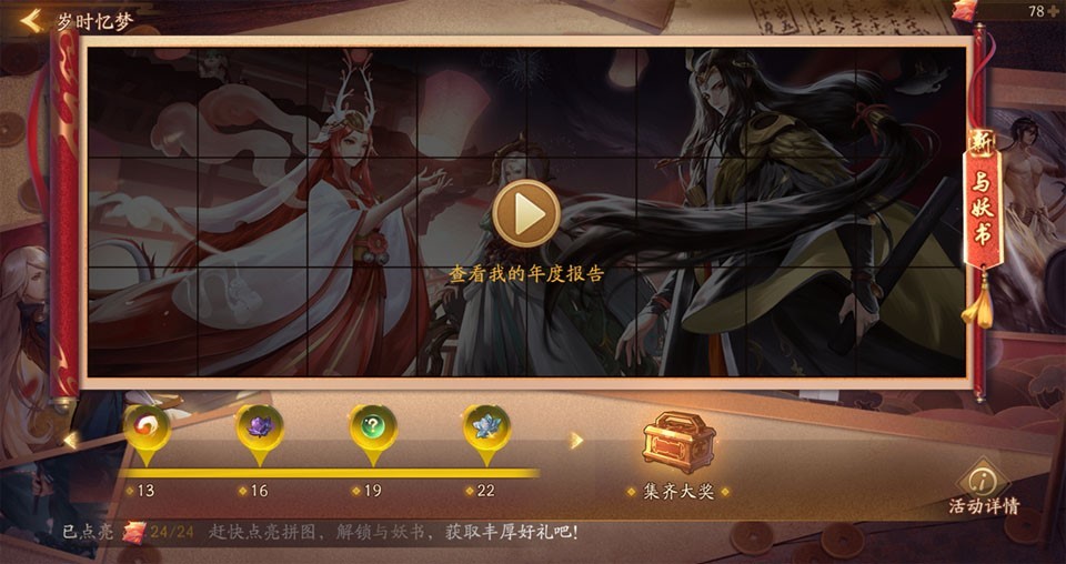 更新之后,大人们每日累计消耗的体力可用于获取“记忆碎片”,将这些碎片转化后可以点亮回忆拼图,最终解锁《与妖书札记》,这里存放着专属于降妖师大人的三周年回忆录。