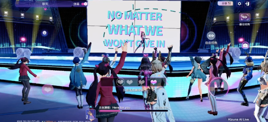 演出过程中,玩家们也时刻准备着ShowTime到来,通过特定的音乐互动玩法,和爱酱一起舞动。每一次ShowTme成功后的全场共舞,也总会让烟花和弹幕在瞬间炸满整个屏幕,这一刻,大家不仅是为爱打CALL的粉丝,也是整场演唱会的参与者。
