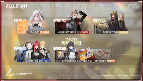 除了以上精彩内容, 这场二周年庆典还有豪华福利等待玩家的领取!S级构造体赛琳娜·幻奏、艾拉·溢彩涂装【逐声迷蝶】、周年意识【库洛姆·夜宴】十连抽和全新主界面,二周年纪念徽章,参与活动,即可免费获赠!此外还有全S级角色自选百分百up和首充重置等超值福利活动预备返场,让我们一起来期待,2021年11月11日,《战双帕弥什》「宣叙妄响」的开幕吧!
