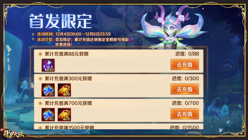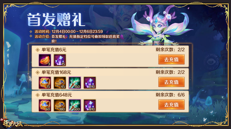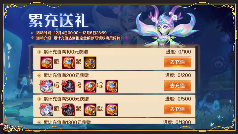 本期活动中还额外叠加首发赠礼(单充)、首发限定(累充)活动,充值即可获得魂晶、SS魂灵碎片、魂灵培养资源等道具,其均可与单累充活动叠加领取!