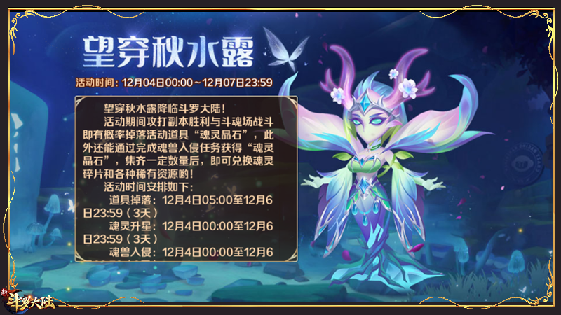 道具掉落时间为12月4日5:00~12月6日23:59,兑换商店会保留到12月7日23:59,请魂师大人们注意活动时间,不要搞错时间了哟~