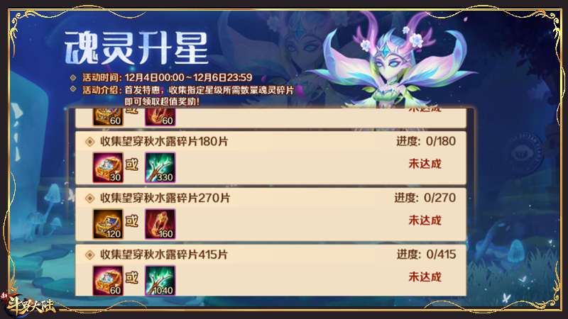 活动期间,升星SS+魂灵望穿秋水露达到指定星级即可获得SS+魂灵碎片2选1、魂灵培养资源等丰厚赠礼,助力魂师大人们快速培养新战力!