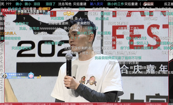 今年,是中国第3次举办FANFEST,因为转为了线上,参与直播观看的粉丝较以往更加庞大,B站官方直播间百万粉丝在线观看,隔着屏幕也能感受到粉丝们的空前热情。上午,当吉田制作人现身直播间时,粉丝们刷起“吉田爸爸!”、“yoshida!!!”“吉P!!!”等弹幕,表达对大大的致敬和喜爱。
