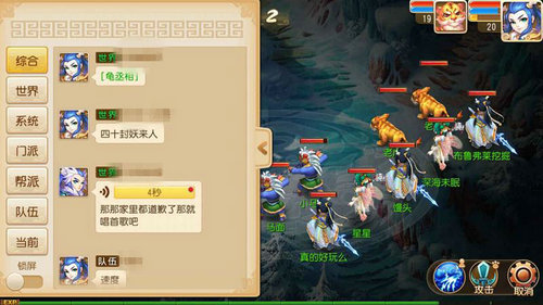 战斗中,左下方的聊天框上有三个话筒形按钮,从左到右分别代表世界频道、帮派频道和队伍频道,选择队伍频道,下达你的指令,顺利歼灭敌人!
