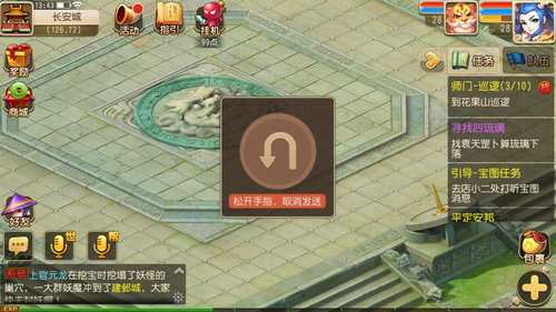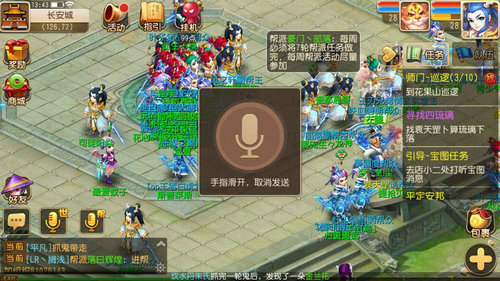 在《梦幻西游》手游中,这个难题将被迎刃而解。轻点左下角的帮派语音按钮,即可送出你对帮派中其他兄弟的话,将手指向上滑动然后松开,还可以取消当前的发送,避免因过激的语言而伤害到其他玩家。