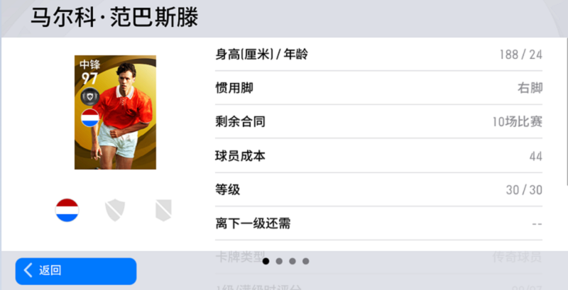 作为现实中的经典高中锋代表,范巴斯滕在阵型中能够起到进攻支点的作用,92的控球值力保球权不失,中场队友可以放心地把球传递给他。