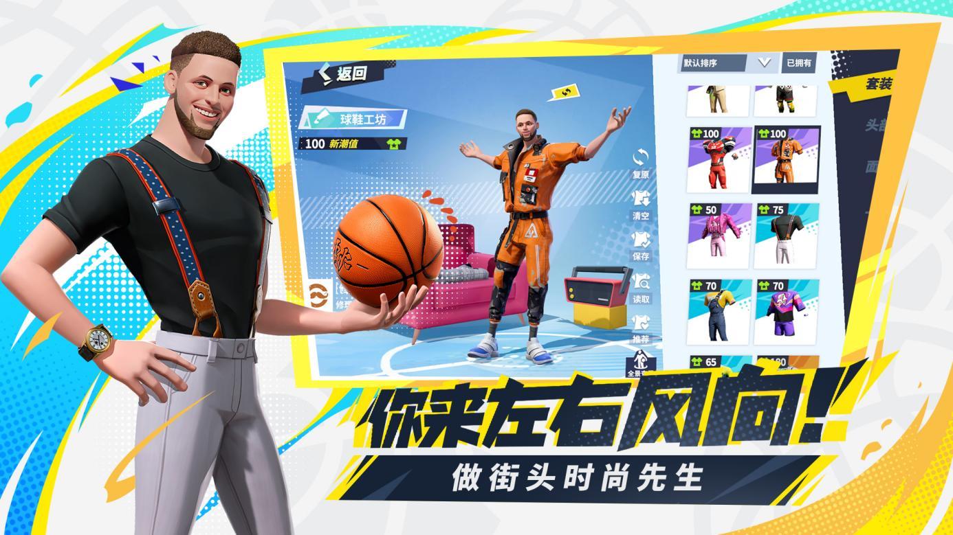 海量时装,定义潮流!换下千篇一律队服造型,自由搭配时装展示时尚一面。五大原创时装厂牌、上百种个性单品,让来自顶级联赛的篮球巨星们自由搭配,引领起街头风尚。全新的球鞋DIY系统,亲手打造独一无二的定制战靴,让潮流之风席卷街道!
