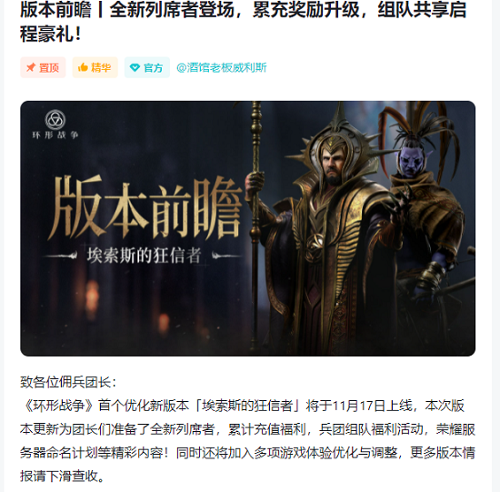 说道国产游戏,不得不提一下今年9月份上线的战棋游戏《环形战争》。作为目前国内较为冷门的游戏类型,《环形战争》在发布之初就收到了不少爱好战棋游戏的玩家关注。随着11月17日,《环形战争》新版本“埃索斯的狂信者”的上线,不管是版本福利还是游戏优化计划,让新老玩家纷纷夸赞诚意满满。