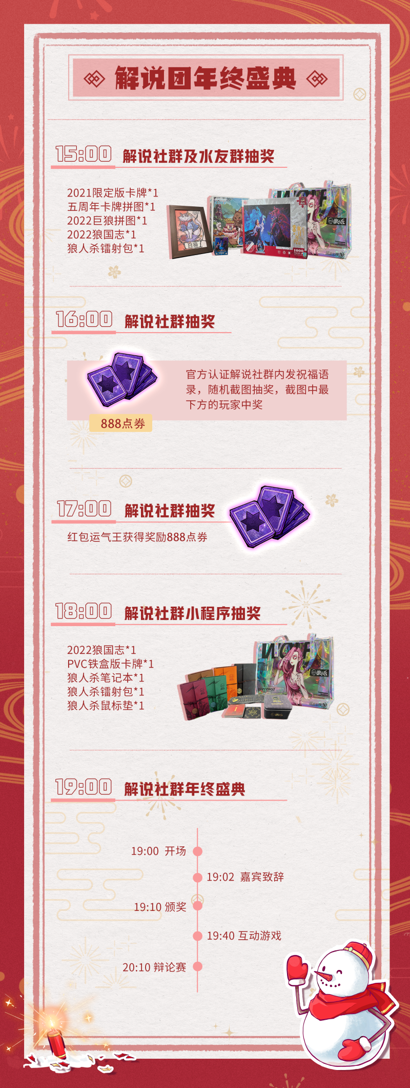 岁末将临,狼人杀官方社群年终盛典陪你暖心过冬!七大社群盛典活动即将开启,更有狼人杀专属周边、社群红包等超多福利等你解锁,狼队友们快来参与吧!