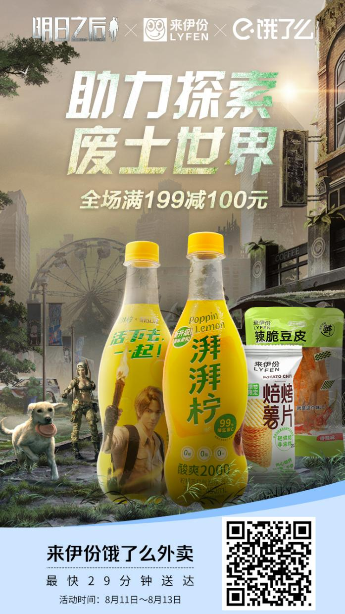 8月11日-8月13日期间,明日之后x来伊份 湃湃柠限量联名款开售,全场满199原减100元。登录饿了么搜索来伊份,湃湃柠限量联名款低至0.1元,更有限量道具助力作战,多重快乐一次解锁。