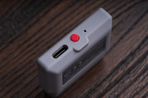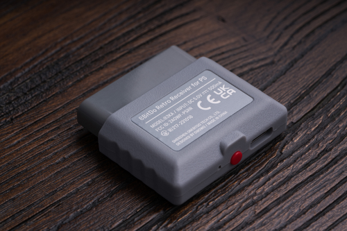 八位堂 PS 蓝牙接收器在外观设计上传承了八位堂的经典设计风格,做工精致,用料扎实,正面是8BitDo的品牌logo,侧面带有波浪线,既美观,也更方便拔插。正面带有TYPE—C接口和一个画龙点睛的红色按钮,细节打磨十分到位。