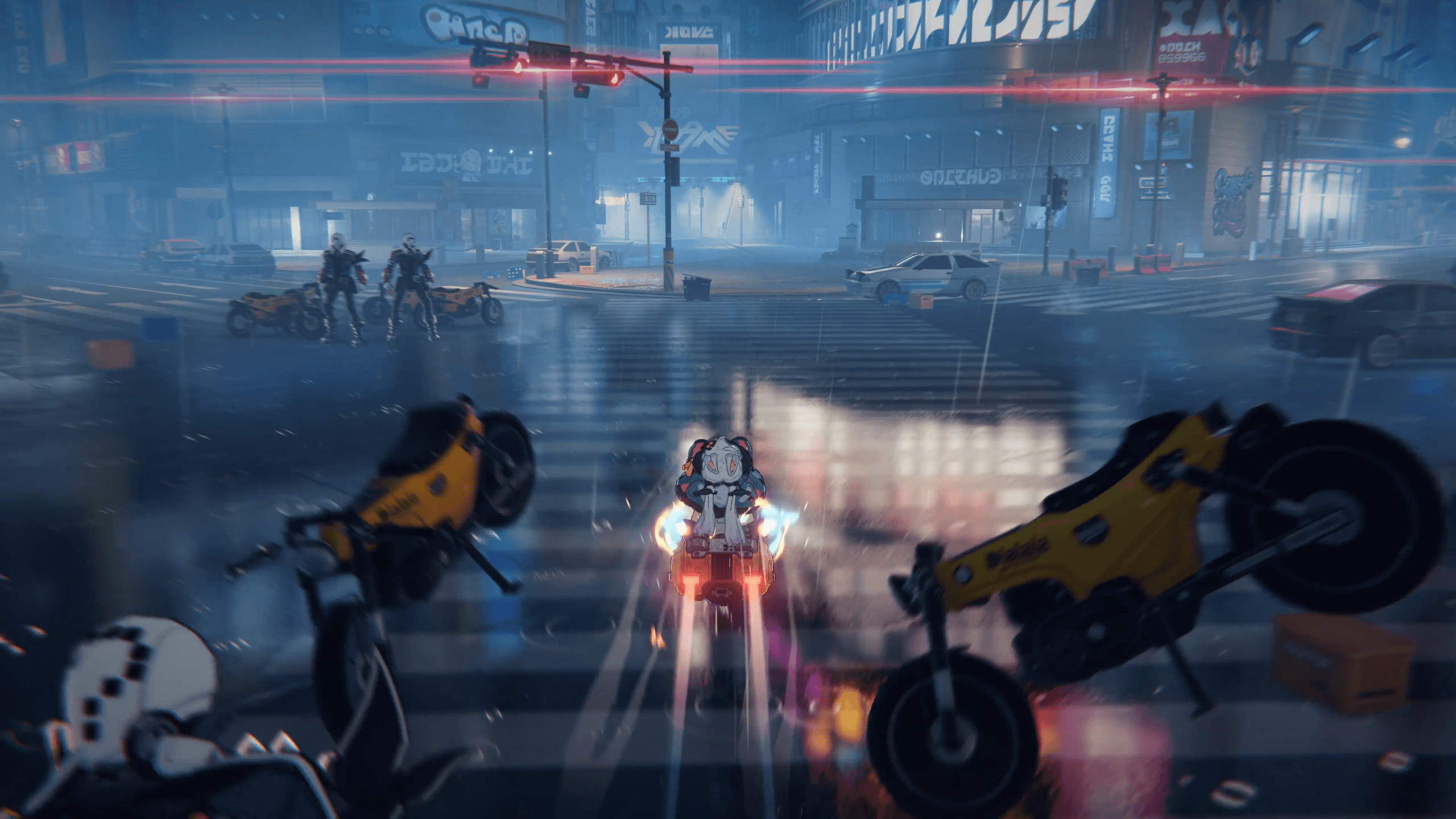 而作为现代都市,倒也不用事事都靠自己。角色也同样可以借助各类载具来辅助自身的移动。除了常规的车辆外,PV还给我们展示了主要角色之一的塔菲的座驾小摩托。它不仅能作为交通工具使用,还能通过变形作用于战斗。这辆小摩托在PV中仅由塔菲驾驶,或许《代号:无限大》中的每个角色都有自己特色的移动手段,那可就有的期待了。飞索、摆荡、跑酷、载具,应有尽有。玩家们可以随时随地按照自己的喜好感知这座都市,来一场属于自己的“City Walk”。