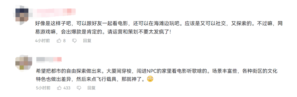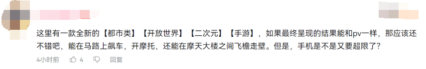 而《代号:无限大》PV下的观众们似乎有点不太一样,他们的评论比起常见的分析,却更在意都市这一场景,对游戏内都市活动这一通常来说“无关紧要”的内容期待更高。