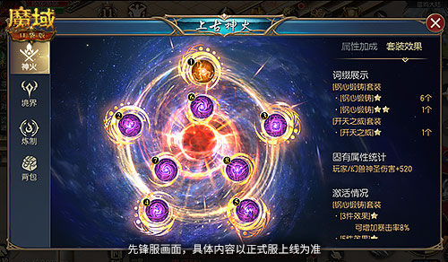 此外,玩家还可使用光曜火灵洗练神火副属性,或通过荒古炽焰余烬为新神火加铸荒古前缀(暴击、暴伤、神圣伤害、幻兽神圣伤害),持续提升神火能力、打造永不止歇的巅峰战力!