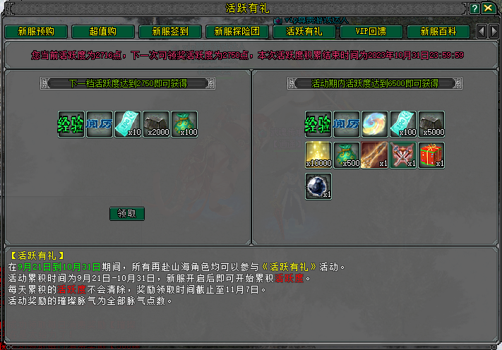 新服专属的探险团活动,助你在新江湖快速结伴,快乐成长。5人成团,一起打本,一起战斗,岂不乐哉!成团即送龙血丸,秒升80级,就能参加游戏中大部分活动了。全团积攒活跃,还有额外好礼!