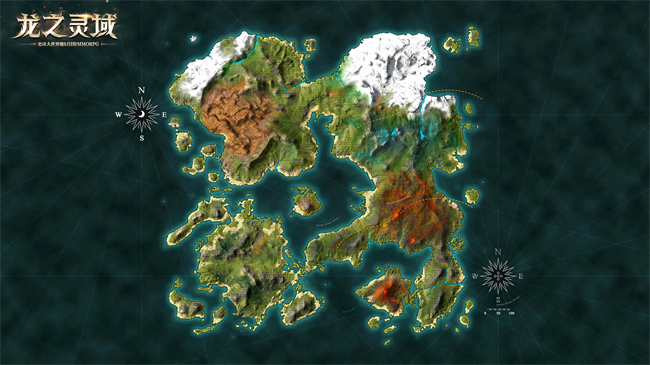 《龙之灵域》创造了一个宏大而逼真的史诗级魔幻大世界场景。通过虚实相融的构建和描绘,康纳图斯世界展现出壮丽的远景和精细入微的近景,勾勒出波澜壮阔的历史和深厚的人文情怀。康纳图斯世界的版图可大致分为四个区域。其中一片是高山屹立、积雪不融的地区,另一片则是岩浆遍布、荒凉广袤的土地。这些地域展示了康纳图斯世界的险峻和壮丽之处。