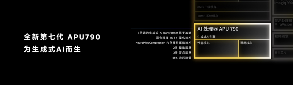 比如天玑9300搭载了全新第七代APU 790的AI性能引擎,处理速度是上一代的8倍,整数运算、浮点运算是上一代的2倍,功耗降低45%。根据官方的数据显示,天玑9300可以支持终端运行10亿、70亿、130亿、至高330亿参数的AI大语言模型,少于1秒就能文生词、文生图。