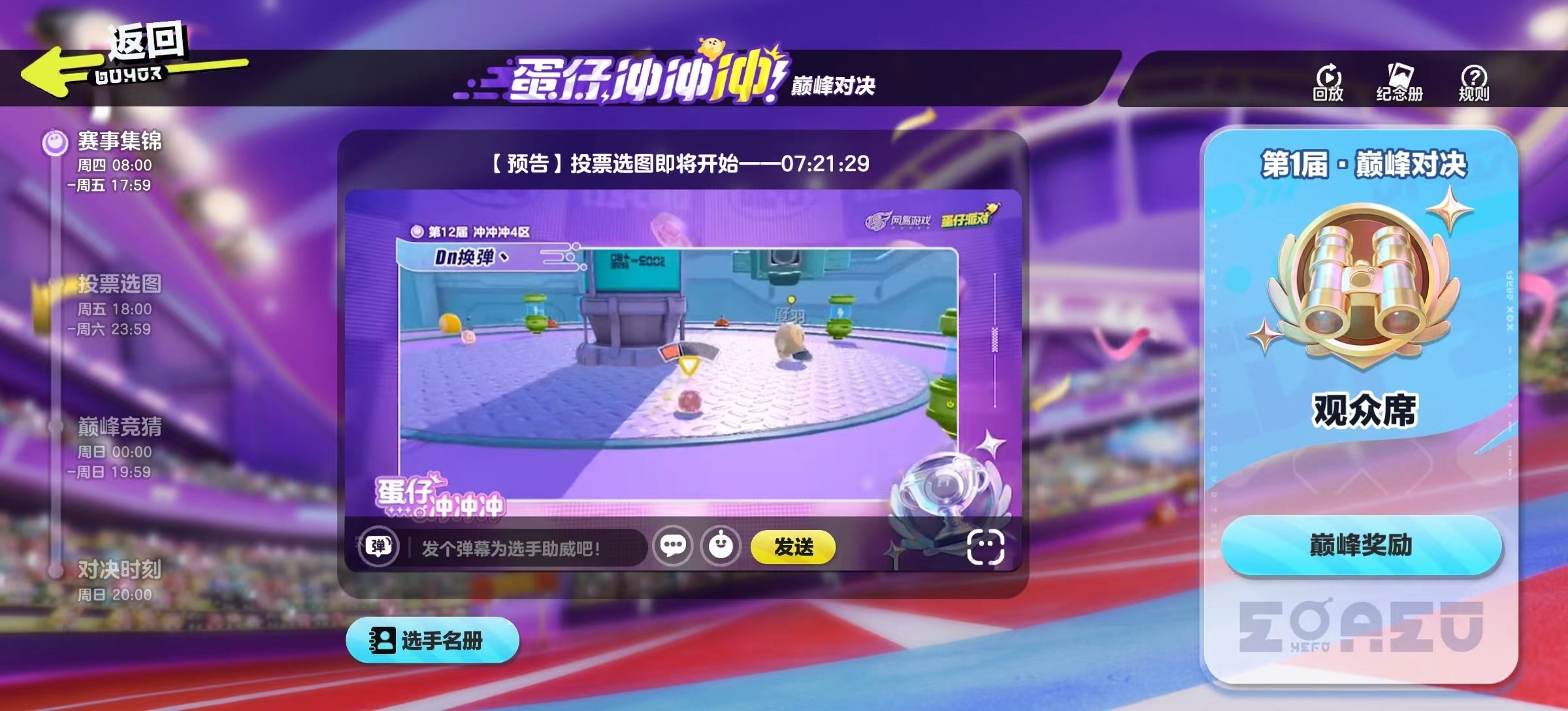 本次蛋仔冲冲冲集结了从第11届到第16届的冠军选手,可谓目前蛋仔竞技水平最高的对决,选手们将在这个舞台上展开激烈角逐,争夺蛋仔冲冲冲巅峰对决冠军的至高荣誉。