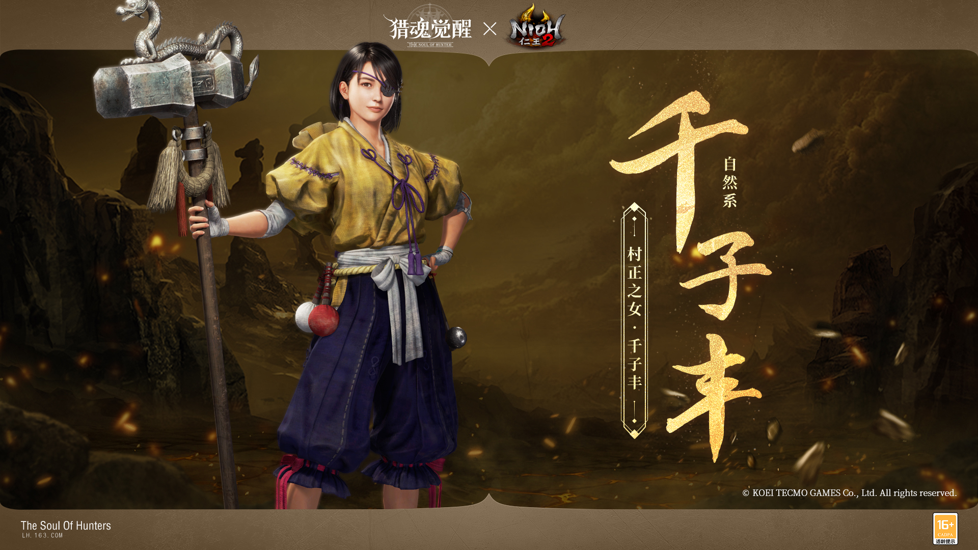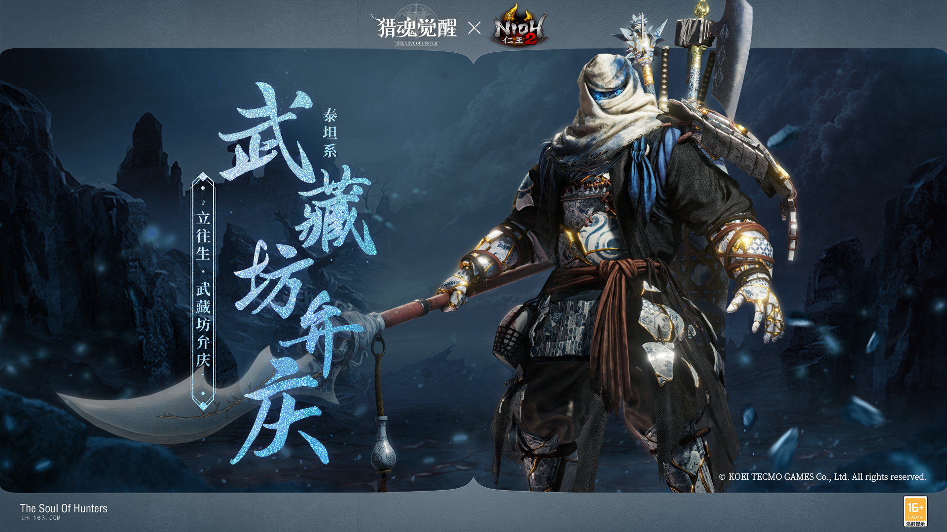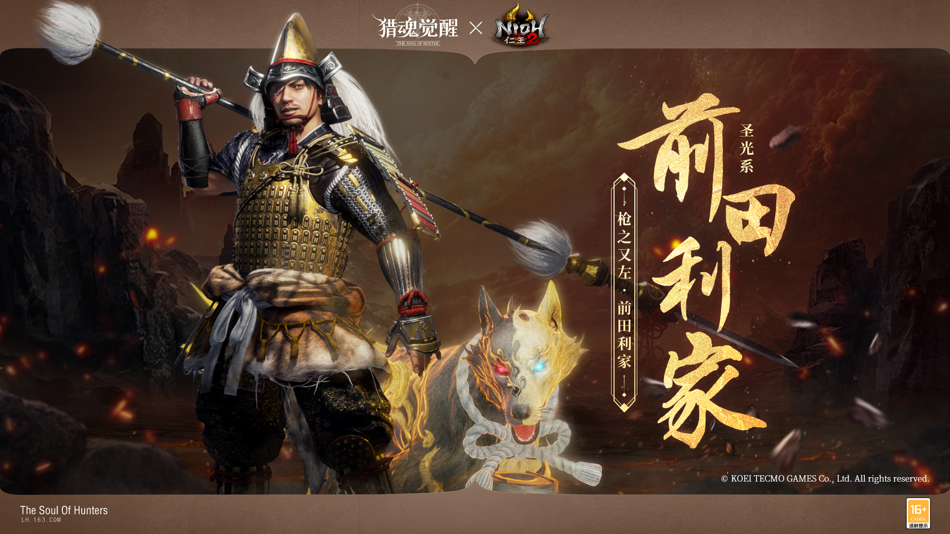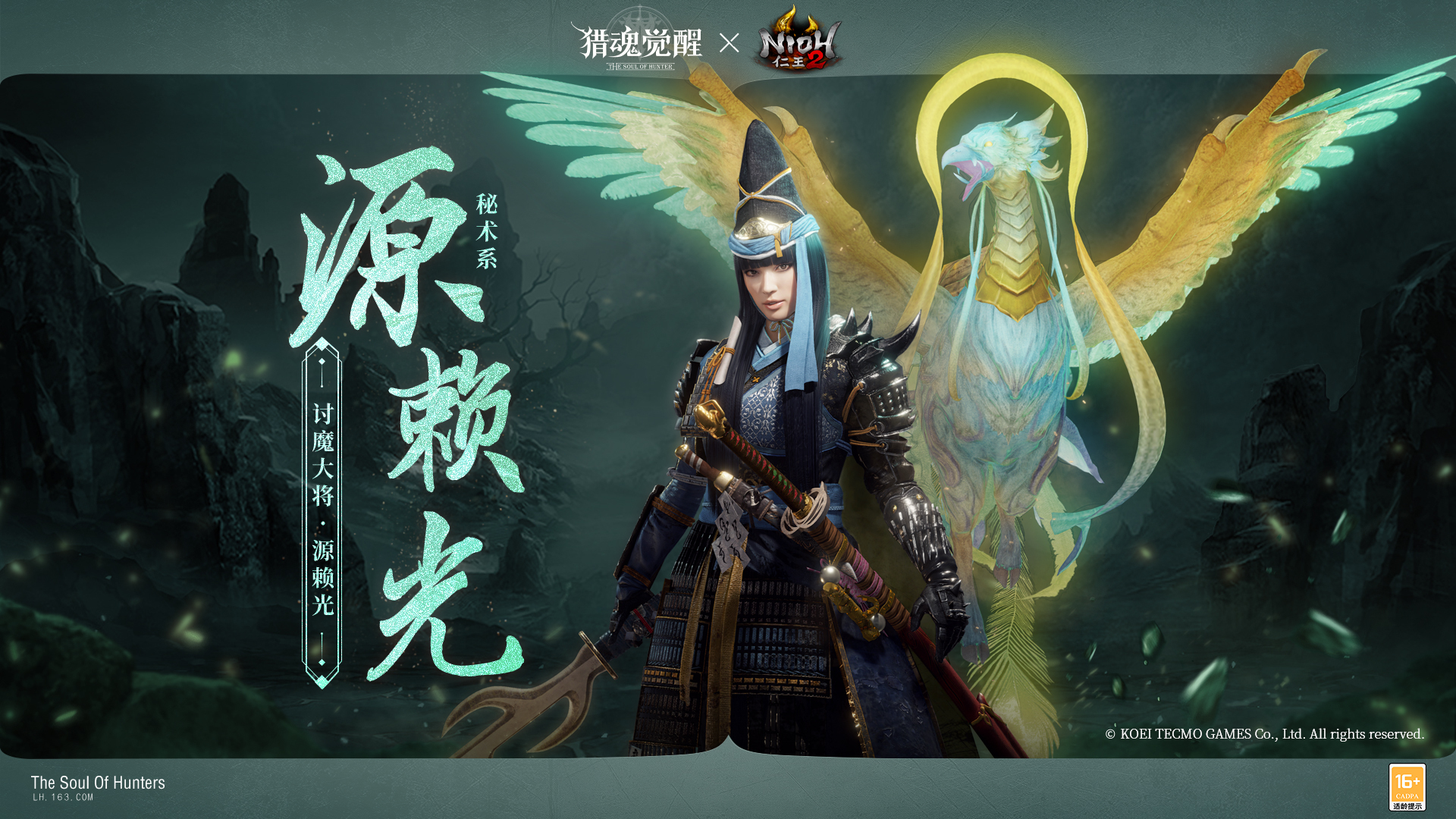 大阴阳师安倍晴明参上!网易超真实团队狩猎手游《猎魂觉醒》与经典黑暗战国动作RPG大作《仁王2》重磅联动第二弹即将震撼来袭!六位人气角色穿越时空来到艾兰特大陆,与你一起撕碎这漫天妖气,开启一段全新的传说篇章!