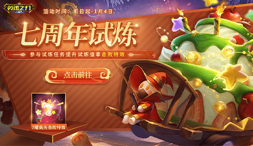 每击败一个敌人,就会送出一次美好的周年祝福!是谁还没有节日氛围满满的7周年击败特效?即日起至1月4日,集齐100个7周年击败碎片即可获得完整的7耀高光击败特效!