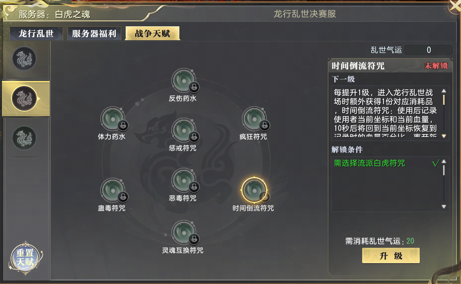 其次,备战自然也离不开集结物资!从每日一条龙任务,到长寿宫副本,再到野外异域统领BOSS……超丰富战争物资掉落方式将为少侠们带来海量+12强化宝石、1级辅助书、玄月、玄兵玄甲等珍稀重宝。白虎帮会成员更可使用战争物资兑换专属战争天赋,获得属性成长或战场内特殊效果!