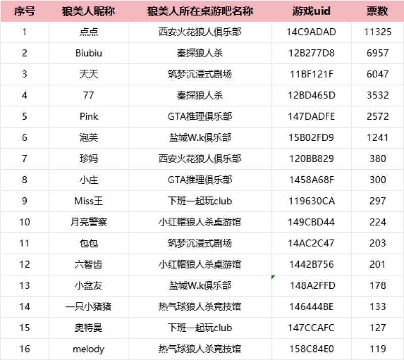 为期三天的‘狼美人’投票,最终票数公示~本次累积投票28999票
