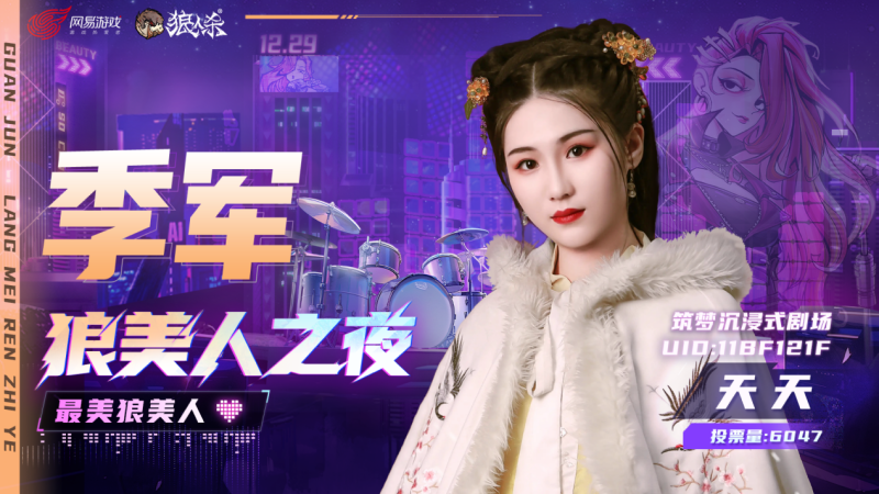 西安火花狼人杀俱乐部“点点”以11325票获得冠军