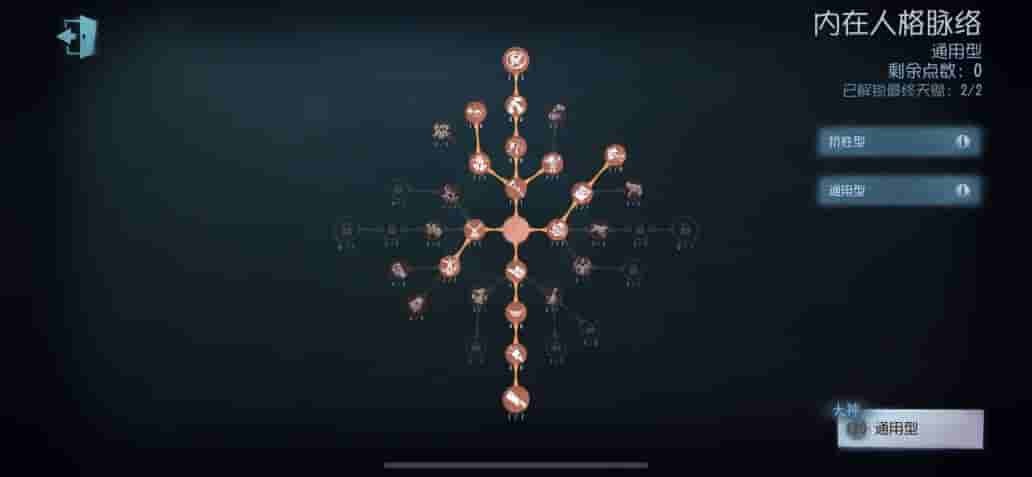 这套天赋适用于大地图和板窗较少的地图,因为带上了“底牌”,少了很多的基础天赋,对比“禁闭空间”+“闪现”的组合,前期追击能力会有所下降,优点就是比较灵活,后期可以根据对局需求使用“底牌”切换辅助技能。