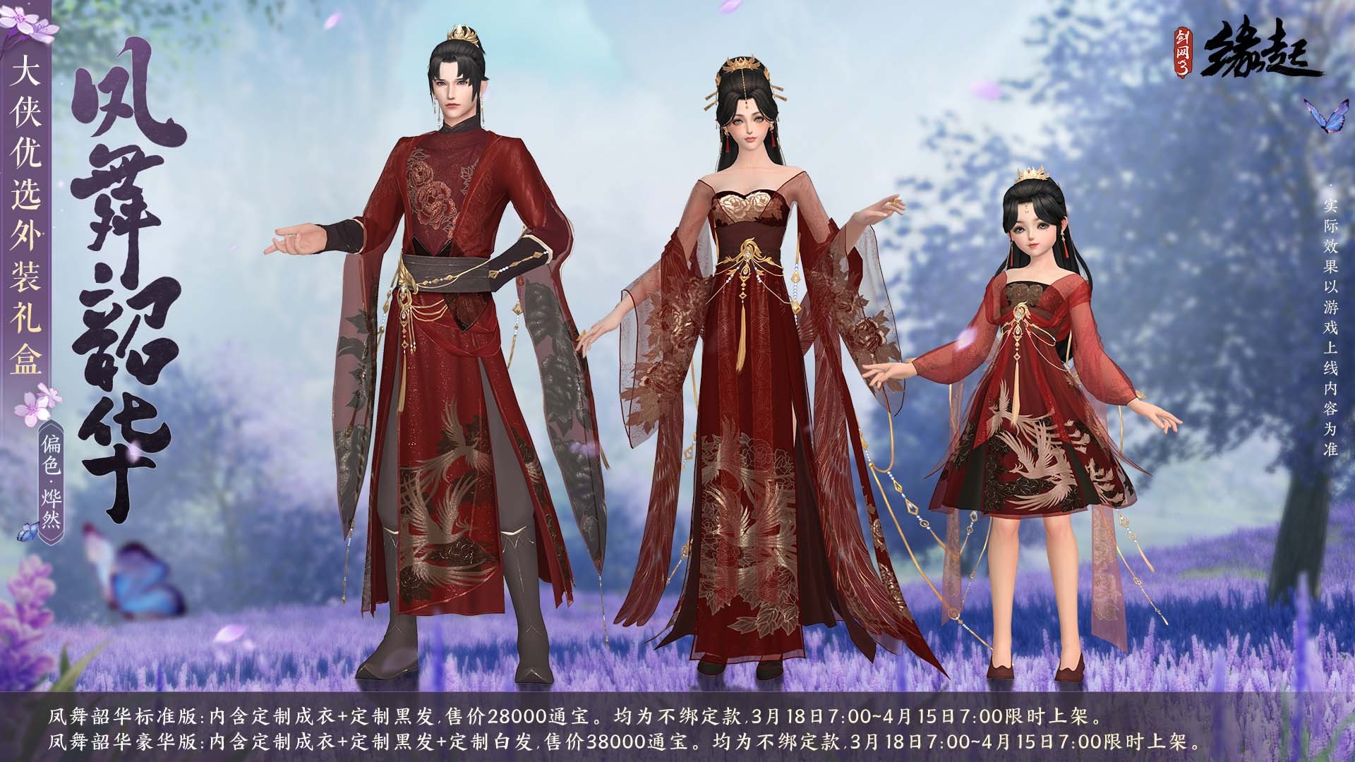 大侠优选外装礼盒「凤舞韶华」共五款偏色,分为标准版和豪华版,将于3月18日7:00~4月15日7:00限时上架,均为不绑定款。