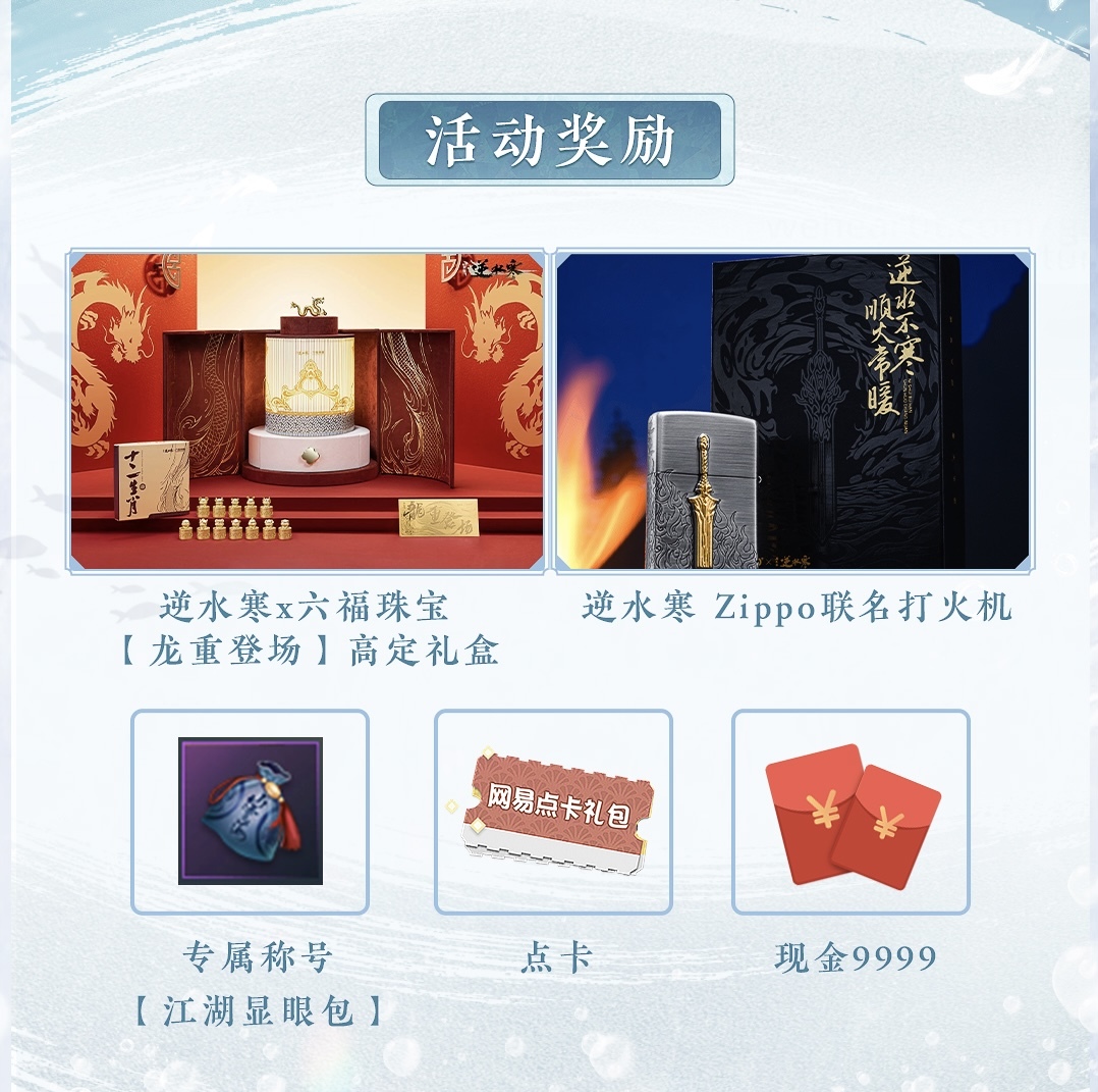 浏览一圈相关话题下的作品,不得不服逆水寒这自由度令人发指的捏脸系统。尤其这还不算完,官方为了激励玩家热情整活,还放出了大波福利。像是逆水寒联动六福珠宝推出的,价值几千元的龙年黄金礼盒、免一年点卡、现金9999、Zippo联名打火机都包含在活动奖励中,凸出的就是一个豪横大气。