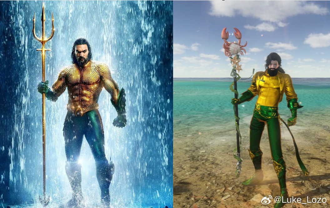 玩家@Luke-Lozo 晒出的好莱坞“海王”同款捏脸,不仅神态形似,就连那霸气的动作姿势、存在感十足的大胡须都1:1表现出来了,相似度高到令大批逆水寒玩家感叹:不用比了,你不是第一谁是!
