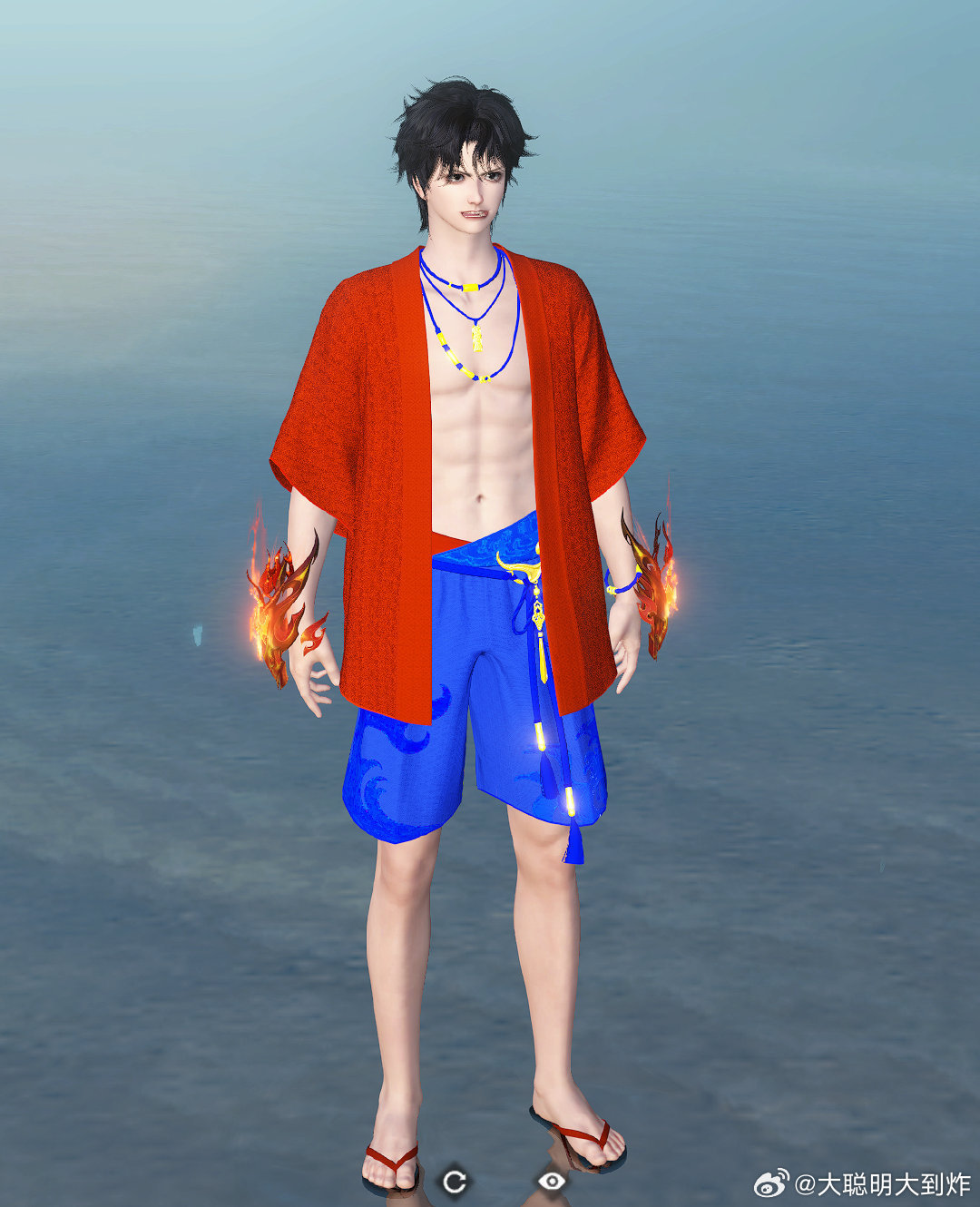 比如,从高人气动漫角色到好莱坞影视人物,玩家都捏了个遍。在各种外观穿搭、染色机制的加持下,玩家@大聪明大到炸 原地化身“路飞本飞”开始乘风破浪,相似的表情管理,放飞的牙齿、搭配上大差不差的时装外观,几乎等于在江湖世界中打造了一个“海贼王”。