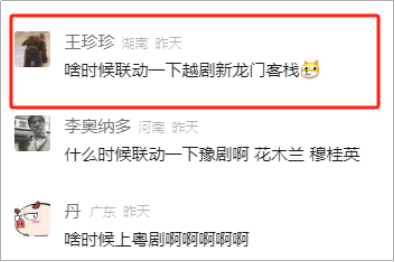 晋剧的加入,除了让逆水寒“梨韵阁”中的戏曲艺术内涵更为多元化,也得到了大量热爱传统文化,希望助推国潮的玩家认可。甚至还有许多玩家开始许愿,催促官方“加戏”。譬如有双厨发言,想要在游戏中看到前段时间收割十几亿播放量的越剧《新龙门客栈》;还有的喊话官方,表示山西晋剧之外还有很多古香古色的建筑物。