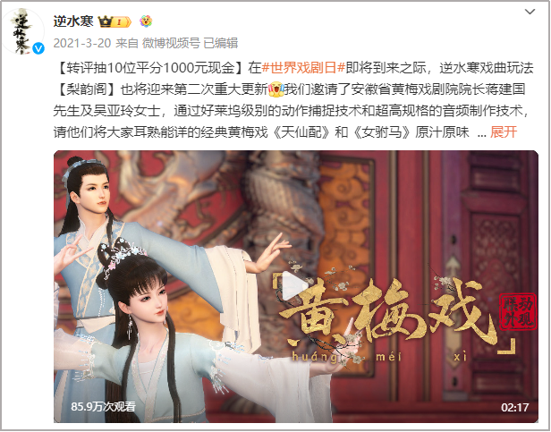 面对这种既走心又创新的联动,玩家想不给出好评可能都难。至于在未来,逆水寒还能把哪些传统剧种,经典曲目“请”到游戏当中,大家不妨期待一下啦~