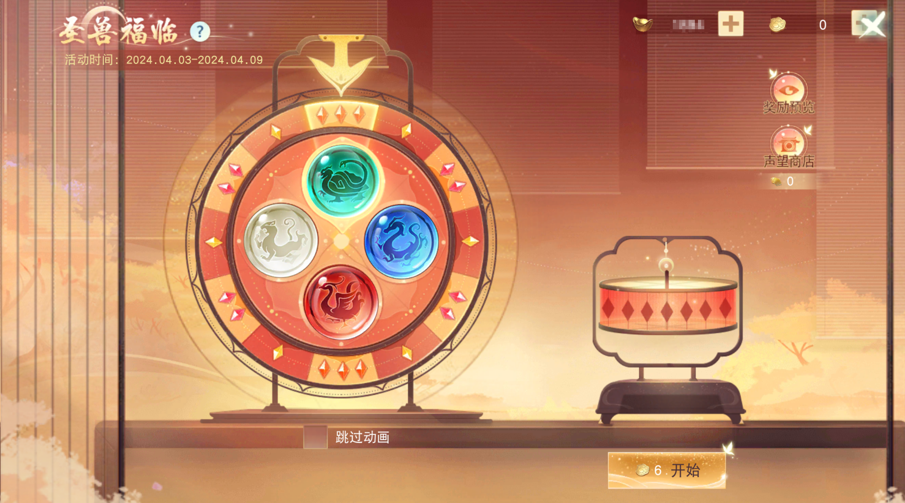 圣兽指引之下,来试试你是否有这份缘带走这些宝物吧!4月3日-4月9日,参与圣兽福临活动,有机会获得五级自选宝石、元魂通天宝箱、百万军资等珍贵奖励。