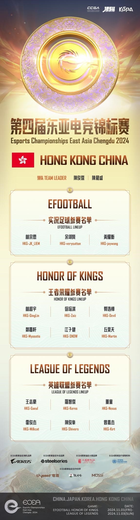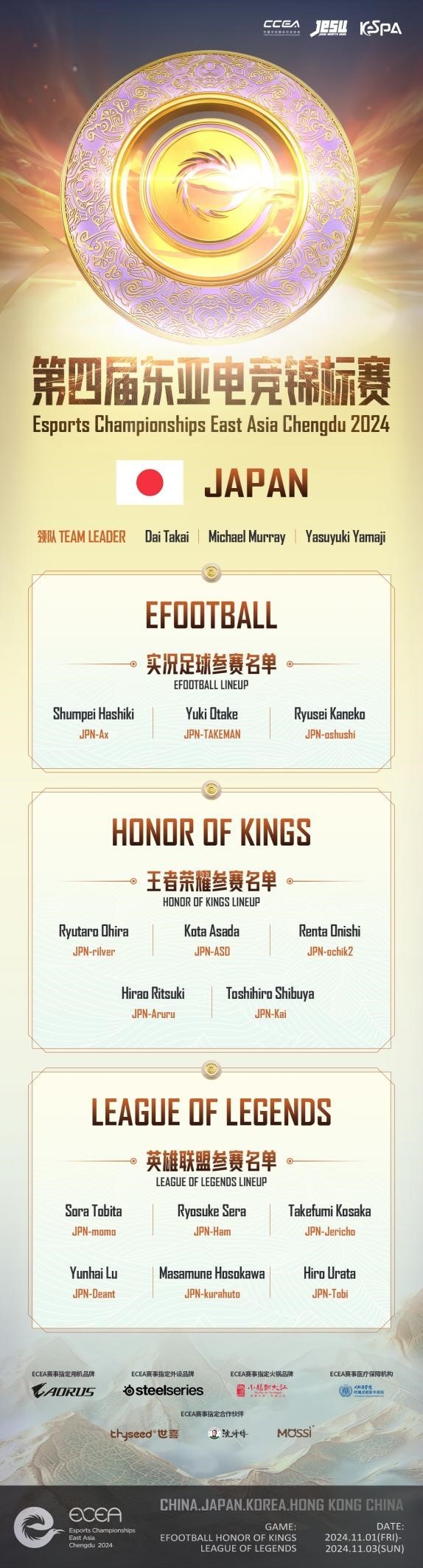 作为这次活动的核心内容之一,“第四届ECEA东亚电竞锦标赛”将邀请中国、日本、韩国以及中国香港等国家和地区的顶尖电竞选手齐聚一堂,在英雄联盟、王者荣耀、实况足球三个竞技项目上展开激烈对决,为观众带来一场视觉与听觉的盛宴!
