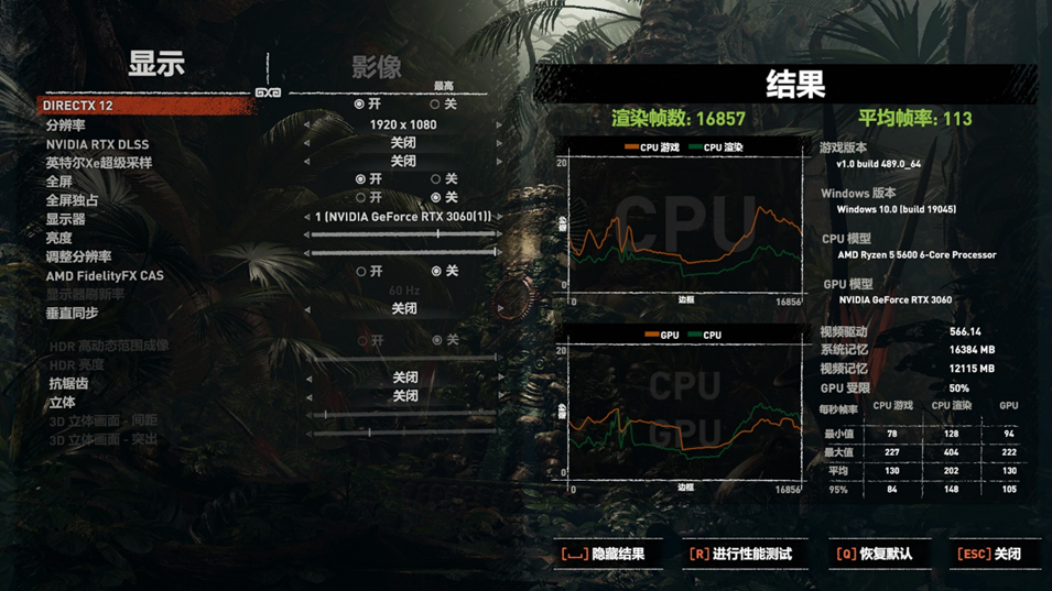 最后是《古墓丽影:暗影》,这里我们使用游戏内自带的跑分进行性能测试。